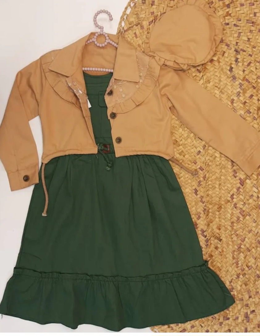 سه تیکه دخترانه شامل سارافون،کلاه،کت
