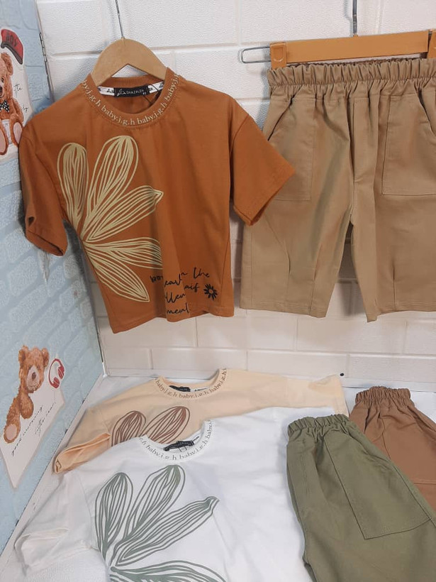 ست تیشرت شلوارک گل،جنس شلوارک کتان و کامل کمر کش